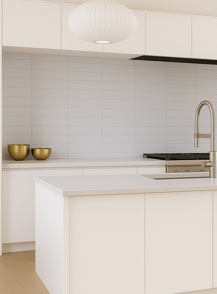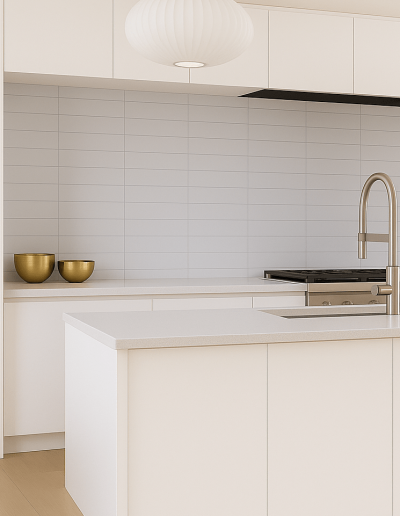 Le Blanc Himalaya Brillant existe aussi en version sans poignée . Une alternative pratique si vous souhaitez changer vos portes de cuisine en conservant vos poignées actuelles. Le rendu reste chic, et l’association des deux types (avec ou sans poignée) crée un jeu de volumes élégant et dynamique.