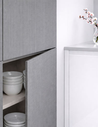 Cela passe par des détails que l’on ne retrouve pas partout : chant collé laser, façades antibactériennes recto verso sans contreface blanche, poignées filantes usinées en atelier pour une finition plus nette, et, sur la gamme Zénit, une surface anti-traces de doigts au toucher mat plus haut de gamme sur du MDF.