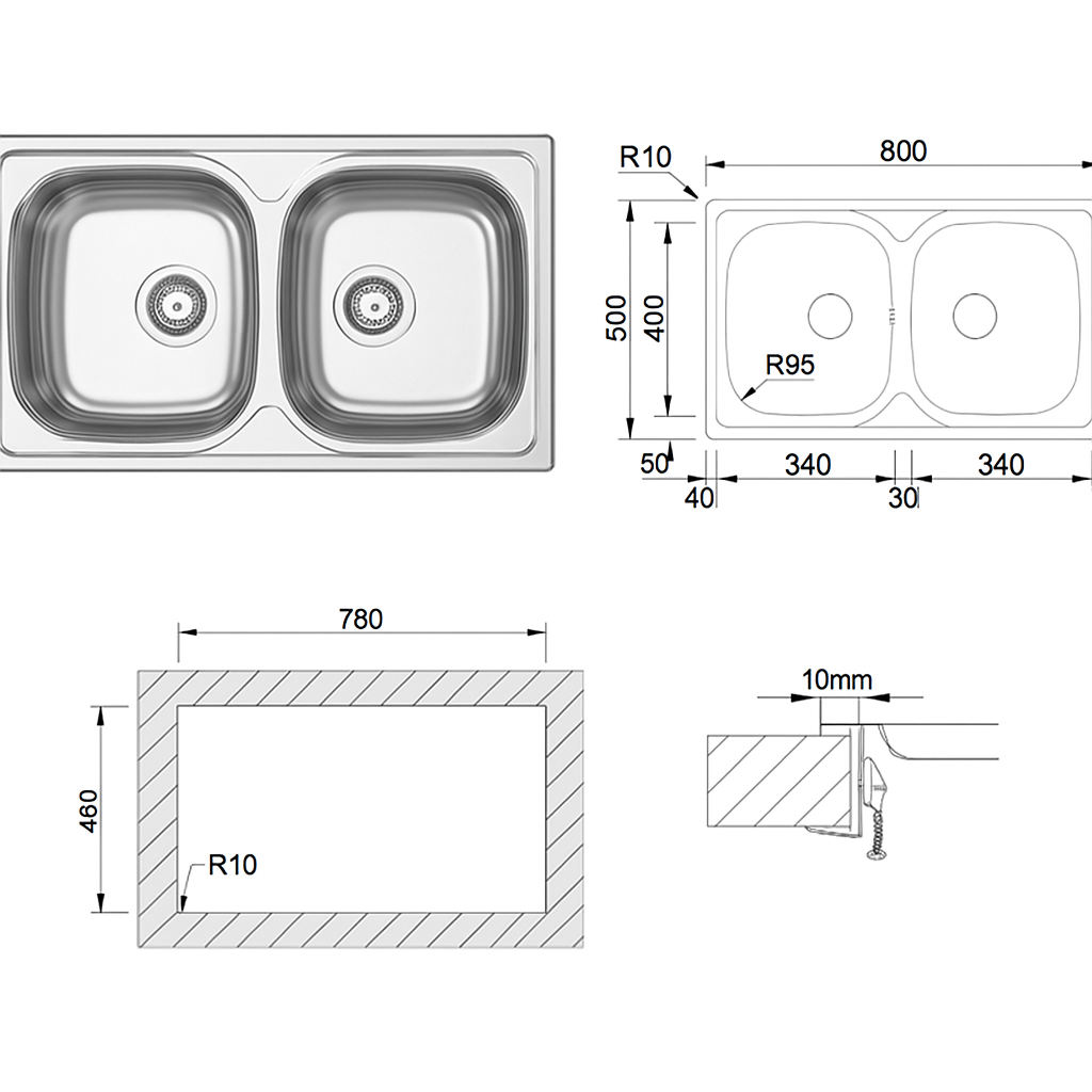 Fabriqué en acier inoxydable haute qualité, il résiste aux rayures, à la corrosion et aux chocs thermiques. Grâce à sa conception encastrable standard, il s’adapte à la majorité des plans de travail de 80 cm. Chaque bac est équipé d’une bonde panier inox, avec une profondeur idéale pour une utilisation quotidienne confortable.