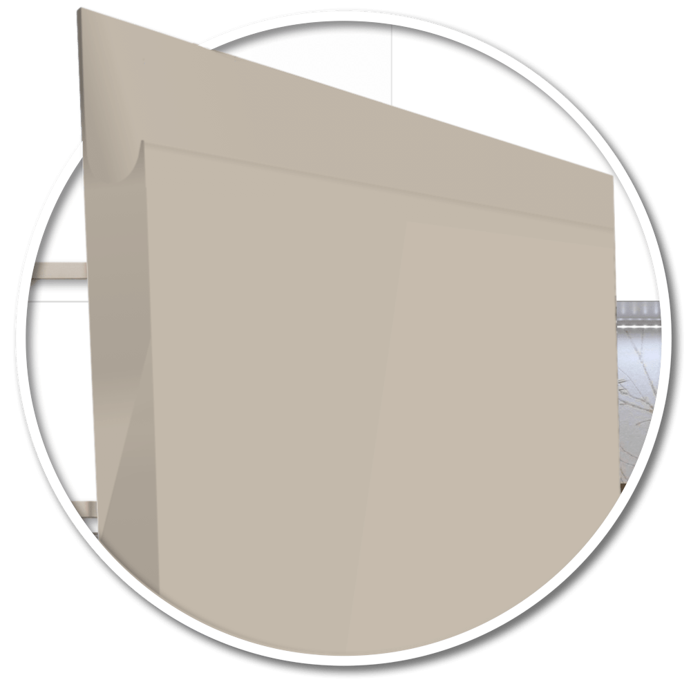 Sculptée avec précision dans le MDF 22 mm, la poignée de cette façade s’efface visuellement pour laisser place à une ligne fluide. Le résultat : une surface mate, continue, sans aspérité, qui donne un sentiment de calme et d’ordre. Ce choix technique valorise la modernité sans ostentation.