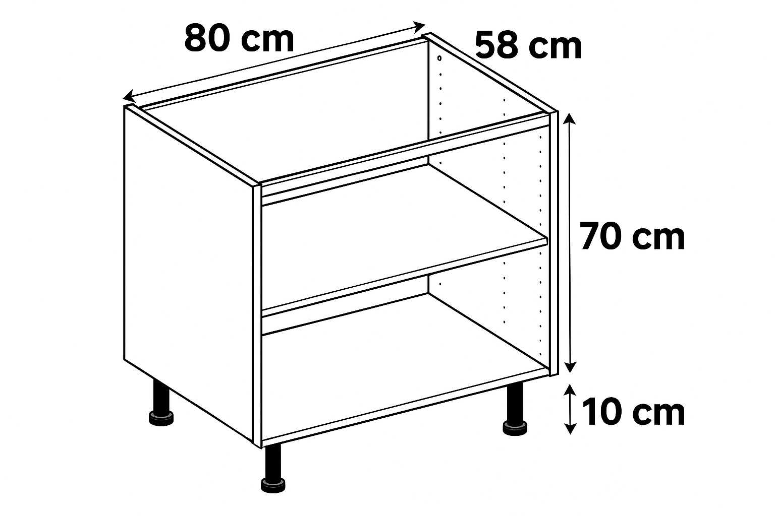 Solide et spacieux, ce meuble bas caisson 700 × 800 × 580 mm est une base idéale pour structurer un îlot central ou créer une zone fonctionnelle sous plan de travail. Grâce à ses 80 cm de largeur, il permet l’installation de deux portes, d’un évier ou encore d’une poubelle intégrée, selon vos besoins d’aménagement.