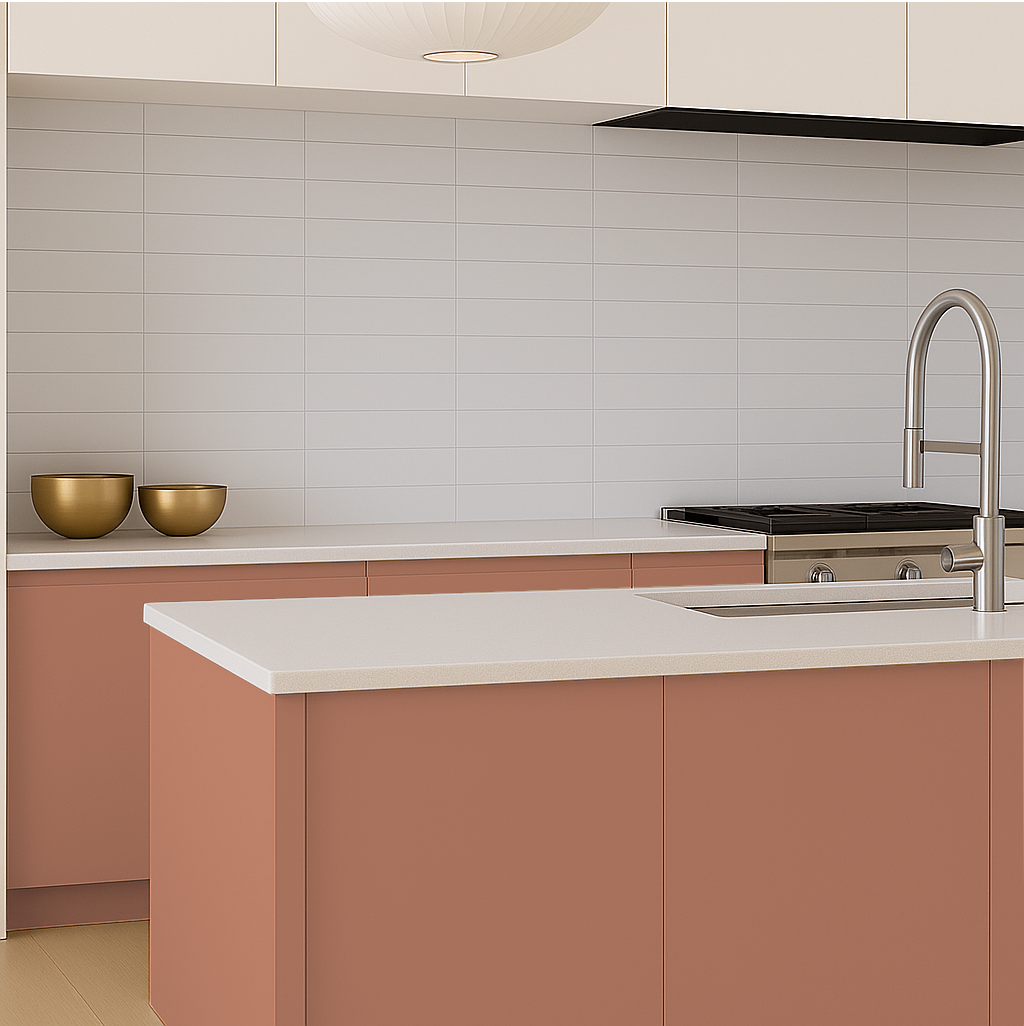 "Le Rouge 'Rastel' est une couleur vibrante et chaleureuse, parfaite pour une cuisine conviviale et élégante. Sa finition mate capture la lumière subtilement, mettant en valeur des éléments organiques comme le bois ou la pierre. Idéale pour des espaces modernes, elle donne une nouvelle dynamique aux cuisines tout en restant intemporelle."