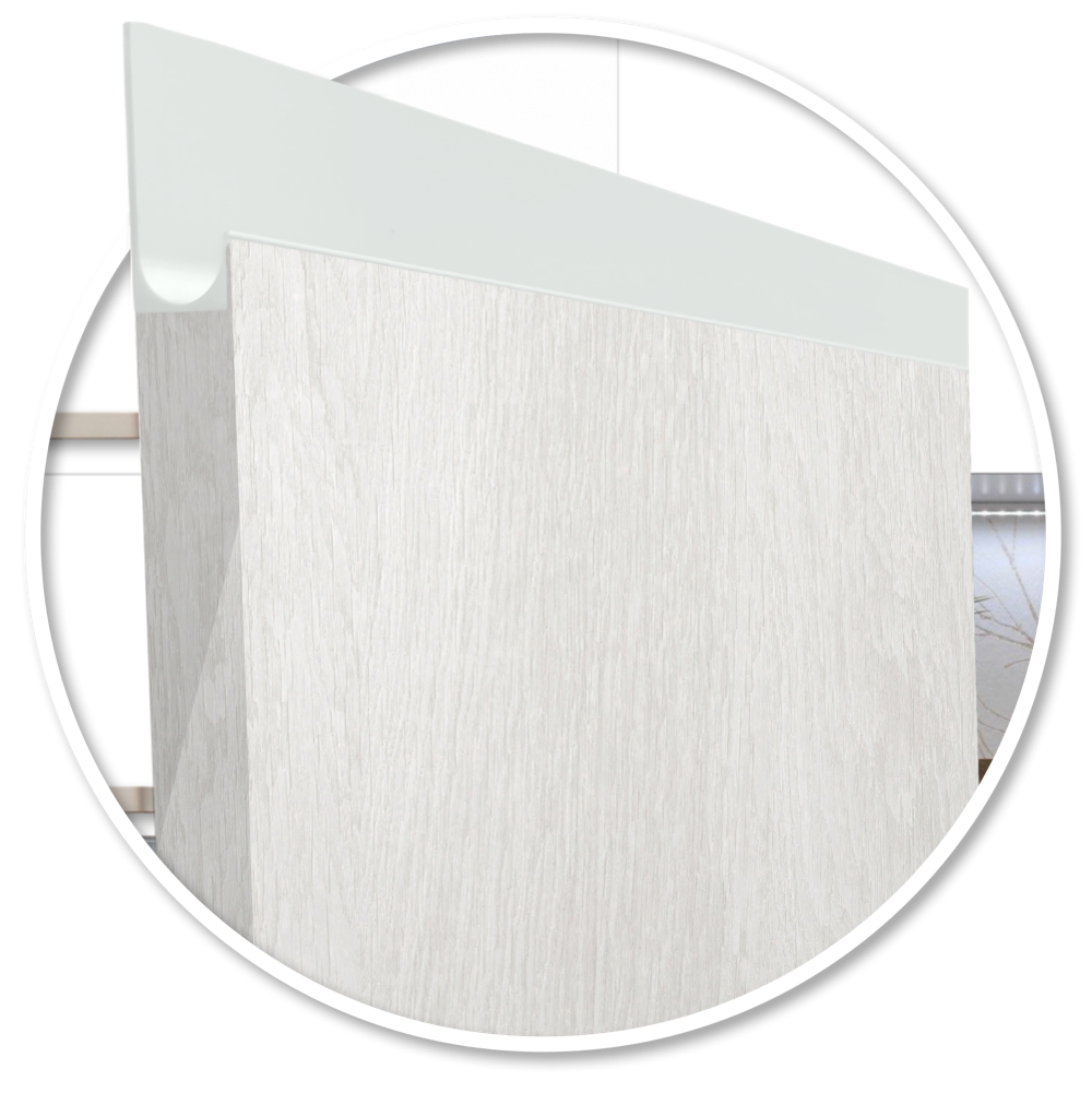 Le décor effet bois blanc mat de Wood-Blanc Camargue met en valeur la structure verticale délicate des nervures. Cette texture apporte du rythme visuel tout en conservant une impression de légèreté. La poignée blanche intégrée, pensée pour la simplicité, complète l'ensemble avec harmonie. Pour moderniser votre cuisine avec douceur, vous pouvez l’associer à des tonalités naturelles comme les gris perle, les beiges poudrés ou les effets pierre clairs.
